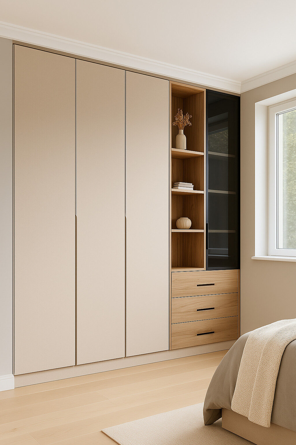 En Casa Meridia trabajamos exclusivamente con MDP y MDF laminado de alta calidad, seleccionando acabados premium como tacto seda, mate, ultra mate, alto brillo y efecto espejo, según el estilo y funcionalidad de cada espacio. Nuestro enfoque está en lograr un equilibrio entre estética, durabilidad y limpieza visual. Elegimos los materiales contigo, asegurando que se adapten perfectamente a tu presupuesto y preferencias.